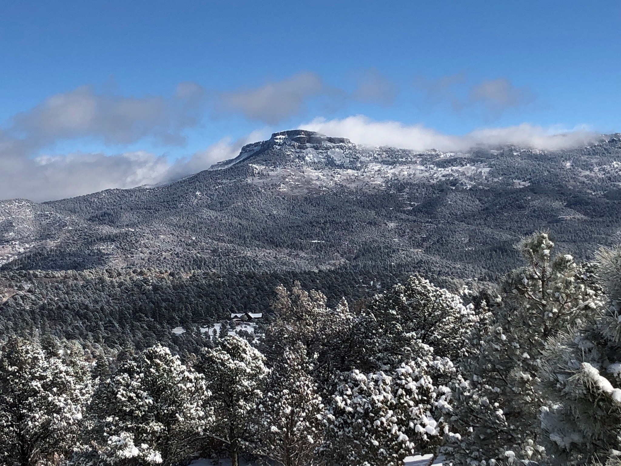 Both plows are on the south end now. Working Gallinas, Timber Park and Fisher's Peak. They should get at least one pass on all the major roads today. Most roads are requiring at least 2 passes to make a narrow pass. It will probably take another 2 or 3 days before most roads are cleared enough for two-way traffic.
